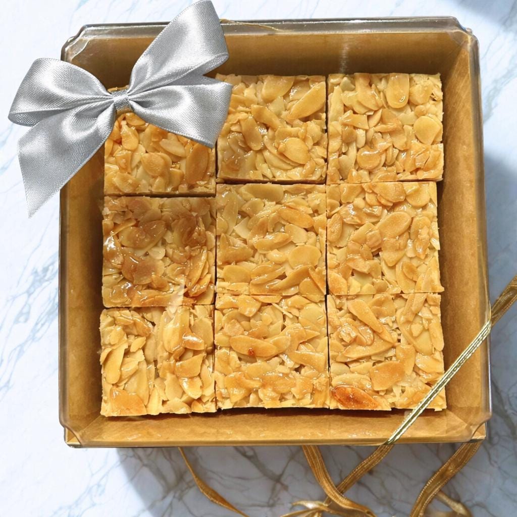 ✔ Authentic Swiss Craftsmanship – Made with delicate pastry sugar dough, perfectly Balanced Texture – A crisp, buttery base with a chewy, melt-in-your-mouth almond topping.